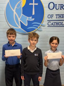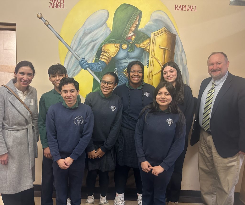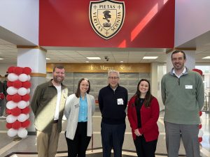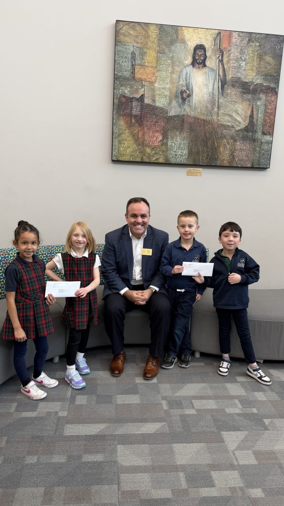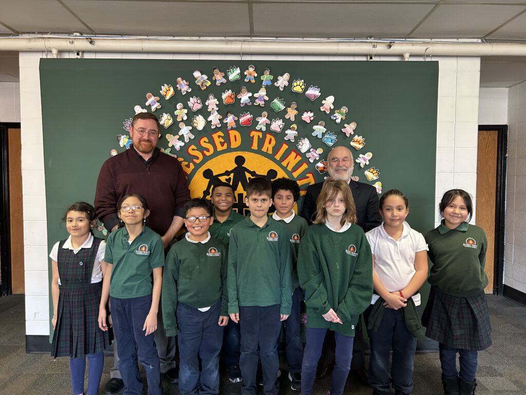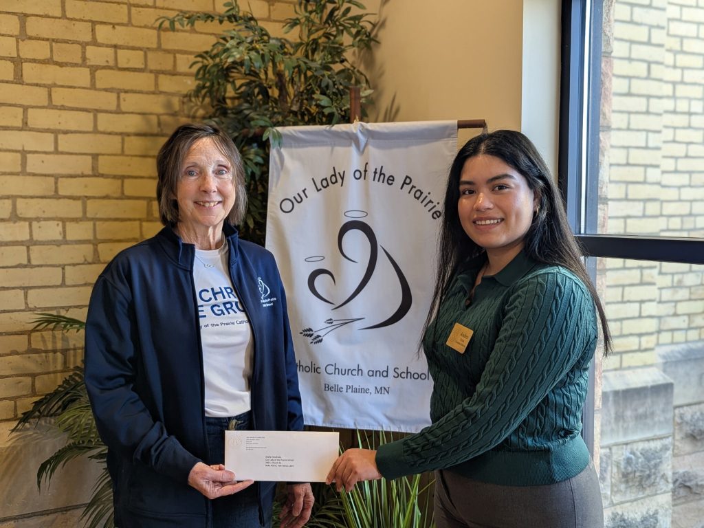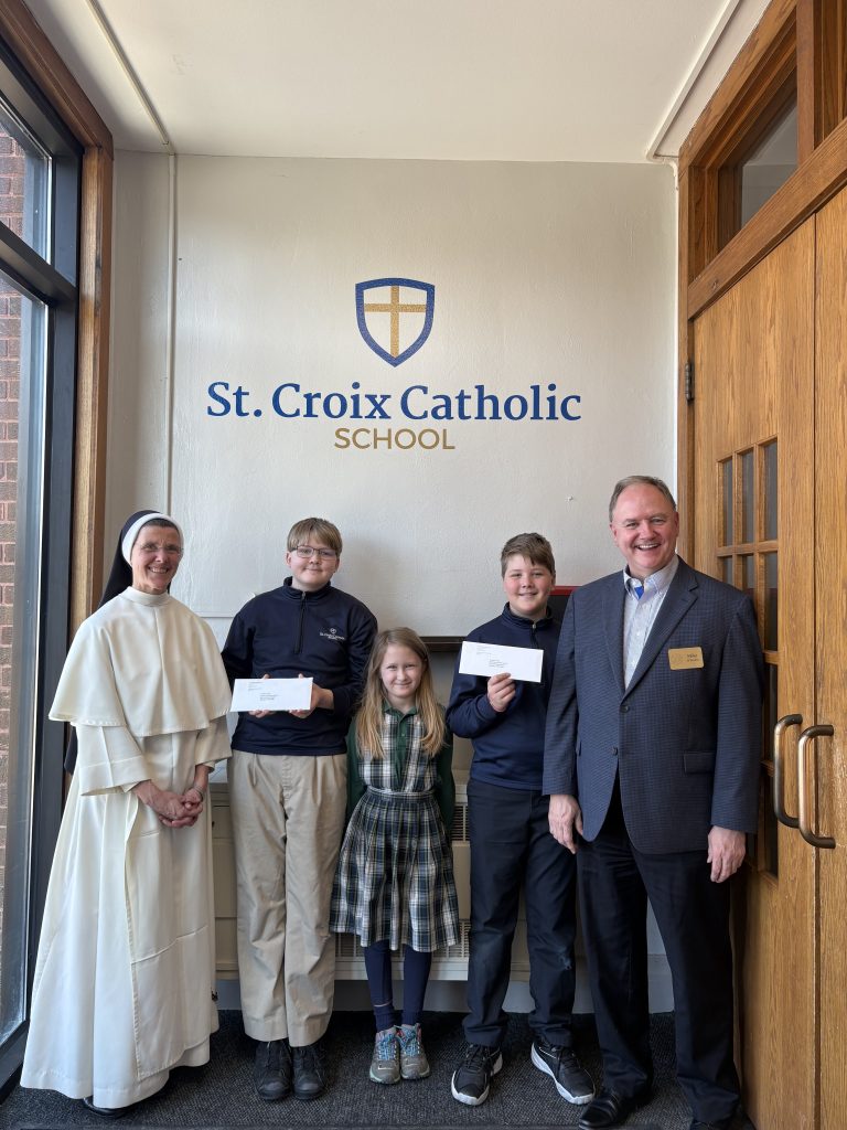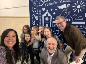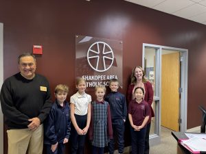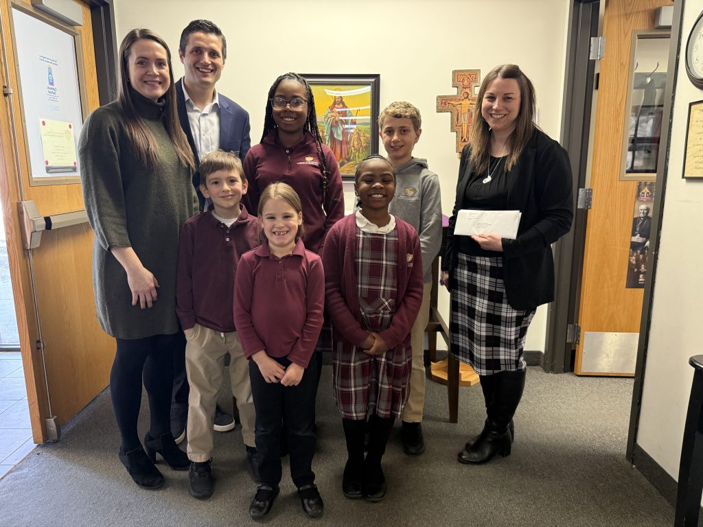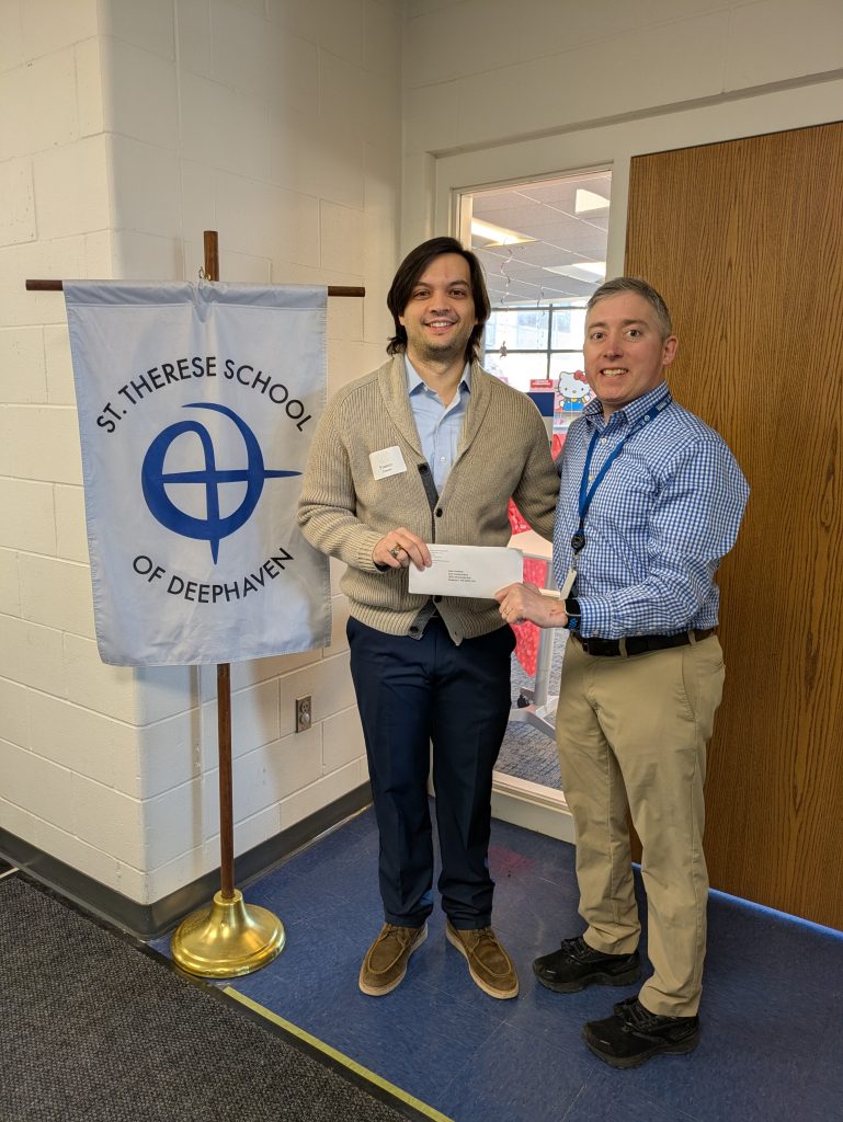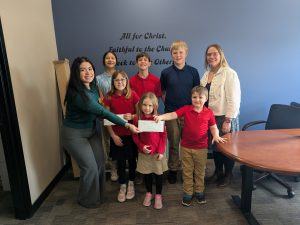 The Aim Higher Foundation hosted its fourth annual Check Delivery Marathon last week on March 2nd. During this one-day scholarship check distribution event, benefactors, board members, and management came together to simultaneously deliver scholarship checks to Catholic schools that serve K-8 across the Archdiocese of Saint Paul and Minneapolis. The aim was to deliver checks to as many schools as there are miles in a marathon: 26.